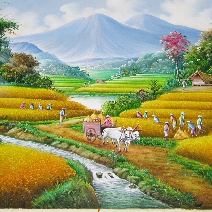 Pemandangan Sawah Padi Lukisan Pemandangan : 1